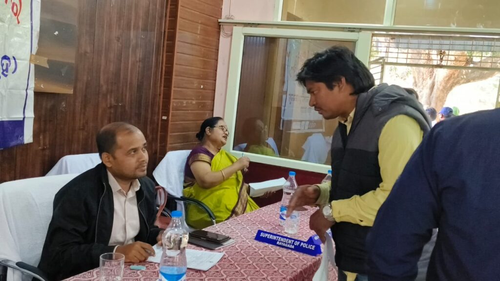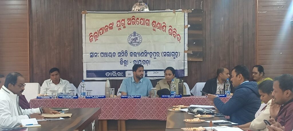 ରାୟଗଡ / କଲ୍ୟାଣସିଂପୁର, ୧୯.୧.୨୦୨୬:ରାୟଗଡ ଜିଲ୍ଲା ପ୍ରଶାସନର ଆୟୋଜନରେ କଲ୍ୟାଣସିଂପୁର ବ୍ଲକ ସଦର ମହକୁମାସ୍ଥିତ ଗୋଷ୍ଠୀ ଉନ୍ନୟନ ଅଧିକାରୀଙ୍କ ସଦଭାବନା ସଭାଗୃହରେ ଏକ ଯୁଗ୍ମ ଅଭିଯୋଗ ଶୁଣାଣି ଶିବିର ଅନୁଷ୍ଠିତ ହୋଇଯାଇଛି।