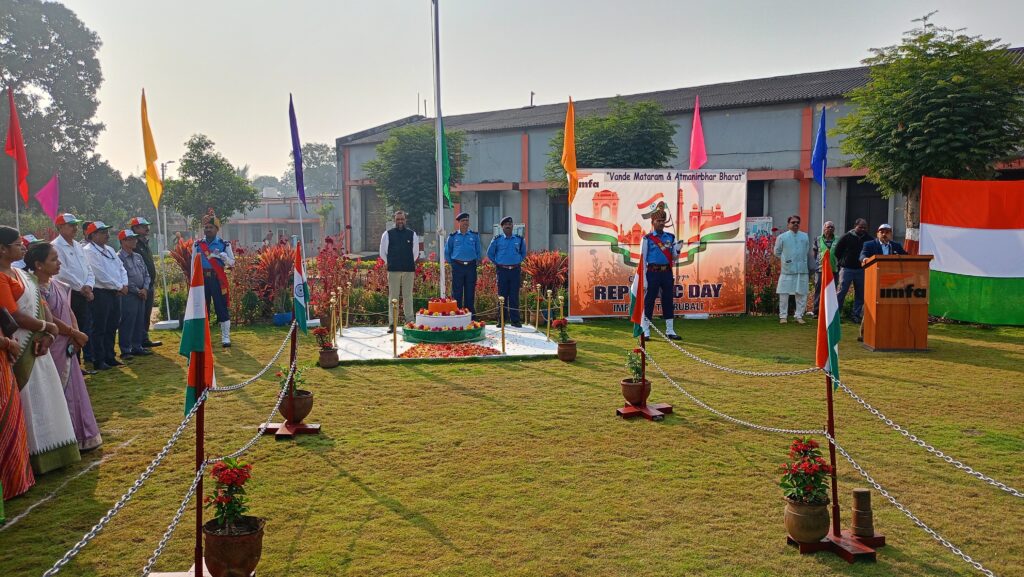 ଥେରୁବାଲି: ଇଂମ୍ଫା ଥେରୁବାଲି ରେ ୭୭ ତମ ସାଧାରଣତନ୍ତ୍ର ଦିବସ ଗର୍ବ, ଗମ୍ଭୀରତା ଓ ଦେଶଭକ୍ତିର ଉତ୍ସାହ ସହ ସମ୍ମାନରେ ପାଳନ କରାଯାଇଛି । ଏହି କାର୍ଯ୍ୟକ୍ରମଟି ୟୁନିଟ୍ ହେଡ୍ ଓ EIC, ଥେରୁବାଲି ଶ୍ରୀ ଜି.ଭି ରାକେଶ ଙ୍କ ନେତୃତ୍ୱରେ ଆୟୋଜିତ ହୋଇଥିଲା। ଶ୍ରୀ ଜି.ଭି ରାକେଶ ଜାତୀୟ ପତାକାକୁ ଉତ୍ତୋଳନ କରିଥିଲେ ଓ ଜାତୀୟ ସଙ୍ଗୀତ ସହ କାର୍ଯ୍ୟକ୍ରମଟି ଆଗକୁ ବଢ଼ିଥିଲା ସମସ୍ତଙ୍କୁ ସମ୍ବୋଧିତ କରି ତାଙ୍କର ଅଭିଭାଷଣ ରଖିଥିଲେ ସେ କହିଥିଲେ ଯେ ଆଜି ର ଏହି ପବିତ୍ର ଦିନ ରେ ଅମ୍ବେ ସମସ୍ତେ ପ୍ରତ୍ୟେକ କର୍ମଚାରୀ ନିଜସ୍ୱ ଉନ୍ନତି ସହିତ କାରଖାନା ବିକାଶ ଓ ସାମୂହିକ ପ୍ରଗତି ଓ ସୁରକ୍ଷା ପ୍ରତି ମଧ୍ୟ ଗୁରୁତ୍ୱ ଦେବାପାଇଁ ଆହ୍ୱାନ ଦେଇଥିଲେ |