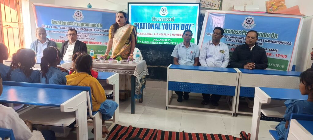 ରାୟଗଡା ଜିଲ୍ଲା କାଶୀପୁର ବ୍ଲକ ପ୍ରଥମ ଶ୍ରେଣୀ ବିଚାର ବିଭାଗ ଅଦାଲତ ତାଲୁକ ଆଇନ ସେବା ଆନୁକୂଲ୍ୟରେ ଜାତୀୟ ଯୁବ ଦିବସ ପାଳନ ଉଦେଶ୍ୟରେ ଏକ ଆଇନ ସଚେତନତା କାର୍ଯ୍ୟକ୍ରମ ବ୍ଲକ ଅନ୍ତର୍ଗତ ଖୁରିଗାଁ ଗ୍ରାମପଞ୍ଚାୟତ ସ୍ଥିତ ସରକାରୀ ଉଚ୍ଚ ମାଧ୍ୟମିକ ବିଦ୍ୟାଳୟ ଠାରେ ଅନୁଷ୍ଠିତ କରାଯାଇଥିଲା।କାର୍ଯ୍ୟକ୍ରମ ରେ ମୁଖ୍ୟବକ୍ତା ଭାବେ ପ୍ରଥମ ଶ୍ରେଣୀ ବିଚାରପତି ତଥା ତାଲୁକ ଆଇନ ସେବା କମିଟି ଅଧକ୍ଷା ଶ୍ରୀମତୀ ନର୍ମଦା କର ଯୋଗଦେଇଥିଲେ। କାର୍ଯ୍ୟକ୍ରମ ରେ ବିଦ୍ୟାଳୟ ର ସମସ୍ତ ଛାତ୍ର ଛାତ୍ରୀ ମାନଙ୍କୁ ସ୍ୱମୀ ବିବେକାନନ୍ଦ ଙ୍କ ଜୀବନୀ, ତାଙ୍କର ମାର୍ଗଦର୍ଶନ ଓ ଭାରତୀୟ ସଂସ୍କୃତି ପରମ୍ପରାକୁ ବିଶ୍ୱସମ୍ବିଳନୀ ରେ ସମ୍ବର୍ଦ୍ଧନା ମାଧ୍ୟରେ ପରିଚିତ କରିବା ଇତ୍ୟାଦି ବିଷୟବସ୍ତୁ କୁ ଆଲକୋପାତ କରିଥିଲେ ଏବଂ କାର୍ଯ୍ୟକ୍ରମ ର ପ୍ରମୁଖ ବିଷୟବସ୍ତୁ ଯାହା’ ବାଲ୍ୟ ବିବାହ ଉଛେଦ ଓ ନିଶାମୁକ୍ତ ଭାରତ ସମନ୍ଧେ ବିସ୍ତାର ଭାବେ ନିଜ ବକ୍ତବ୍ୟ ଉପସ୍ଥାପନା କରିଥିଲେ।ବିଚାରପତି ଶ୍ରୀମତୀ କର କାର୍ଯ୍ୟକ୍ରମ ଟି ର ପ୍ରତିନିଧିତ୍ୱ କରିଥିଲେ। ଏହି ପରିପେକ୍ଷୀରେ କାଶୀପୁର ଓକିଲସଙ୍ଘ ସଭାପତି କନ୍ହେଇଲାଲ ଜଏନ, ଓକିଲ ପ୍ରେମାନନ୍ଦ ନାଏକ, ଓକିଲ ପ୍ରମୋଦ କୁମାର ନାୟକ, ଓକିଲ ରଞ୍ଜିତ କୁମାର ବୈଦ୍ୟ, କାଶୀପୁର ତାଲୁକ ଆଇନ ସେବା ସମିତି ସଦସ୍ୟ ଏବଂ ବିଦ୍ୟାଳୟ କର୍ତ୍ତୃପକ୍ଷ ଉପସ୍ଥିତ ଥିଲେ।